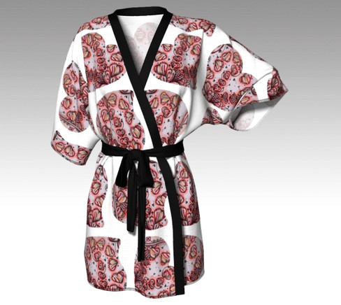 NEW Hearts Design Silk Kimono Robe